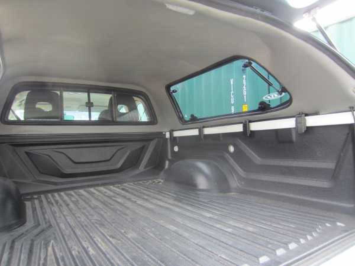 The SJS Canopy / Hardtop has a reputation for strength and durability. The attractive design incorporates many practical features and has proven very successful both here, and around the world. It comes painted in the required colour. The colour coded fiberglass rear spoiler has a built in integrated 3rd brake light, fitted with tinted side opening windows with 60% tint for added security. A lockable rear glass tailgate, supported on twin gas struts and with a sliding bulkhead window and roof bars, as well as an interior light. They are finished with a grey interior, that is both durable and neat. The Canopy / Hardtop also has the added function of holding the tailgate of the pick up in the closed position when closed, thus preventing the tailgate opening without the Canopy / Hardtop door being unlocked and opened first.
